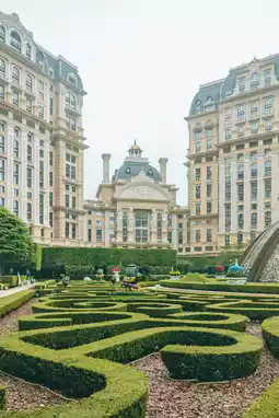 2️⃣: You can climb up to the Grand Lisboa Palace Pavilion behind the dome sculpture for a bird's-eye view of the entire garden and the East-meets-West architecture (as shown)