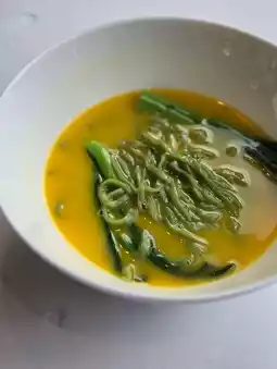 Mom worried she wouldn’t be full, so she ordered a bowl of handmade spinach noodles in rich chicken broth. The chewy noodles and truly flavorful broth earned her high praise, calling it the MVP of the meal.