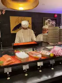 The sashimi section is a highlight, featuring carefully selected fresh fish. Thick slices of salmon and tender sweet shrimp melt in your mouth, offering a true gift from the ocean.
