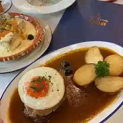 Portuguese-style Beef Tenderloin with Sunny-side-up Egg & Smoked Ham with Potatoes