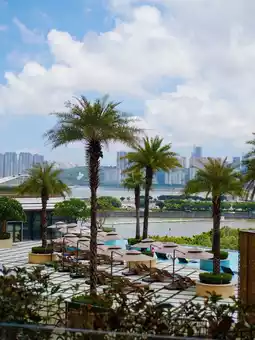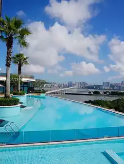 The infinity pool offers a stunning backdrop of the Macau Tower, making it a great spot for Instagram-worthy shots.