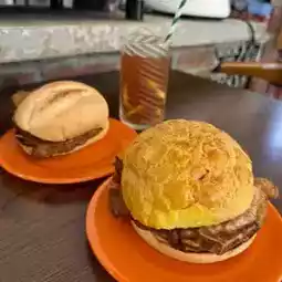 The baked pork chop bun 🐷 is crispy on the outside and soft on the inside, with tender pork, a classic Macau snack.