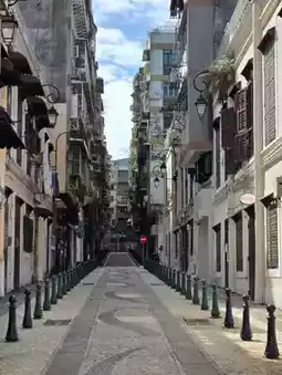 Rua de São Roque, on the other hand, is a renowned cultural and creative district in Macau. The street is lined with vibrant Portuguese-style buildings, and its pavement is adorned with black, white, and red mosaic stones, exuding an exotic charm that makes it a perfect spot for photography.