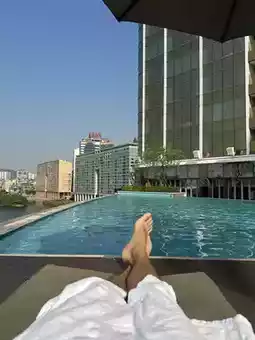 A hidden gem under the Macau Tower! The infinity pool and the city skyline are in the same frame, making it easy to take magazine-worthy photos