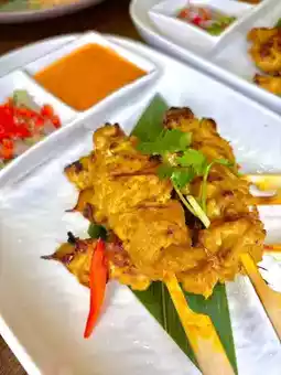 A must-order every time! Charcoal-grilled with intense smokiness, the juicy chicken pairs perfectly with rich peanut sauce✨