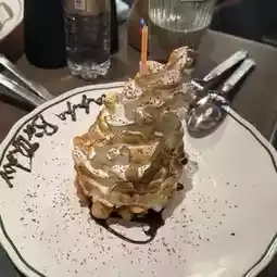 Perfect as a birthday cake, it adds a ceremonial touch to celebrations! The manager will arrange for the kitchen to write "Happy Birthday" on the plate. The waffle is incredibly sweet but absolutely delicious—be sure to heed the manager's advice on sweetness levels when ordering. Pair it with ice cream to balance the sweetness if you're not a fan of overly sweet treats.
