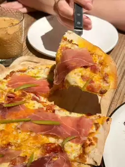 🍕 Super meat thin crust pizza Full of surprises! The crust is so thin that it is translucent but super crispy, covered with beef, sausage and bacon, and the cheese is exaggerated, a must-order for meat lovers;