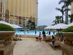 The "Skytop Wave Pool" at Galaxy Macau is Asia's premier water entertainment facility, featuring an impressive infinity pool that makes you feel like you're on a tropical island high above the city. The highlight is the world's longest Skytop Adventure Rapids (575 meters) and a man-made white sand beach, creating an immersive resort-style experience. It's perfect for families, couples, and friends, offering a comfortable spot for every type of guest.
