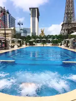 I had a wonderful time at the Parisian Macao's infinity pool. The pool's design perfectly reflects the hotel's romantic atmosphere. The infinity edge allows the water to connect with the distant skyline, creating the illusion of merging with the sky as you swim. Plenty of lounge chairs are available for relaxing in the sun, creating a tranquil and comfortable environment. The water is crystal clear, making the swim incredibly relaxing. The service is attentive, with staff proactively offering drinks, ensuring you enjoy every moment by the pool. If you're visiting Macau, this pool is the perfect place for a romantic and relaxing getaway!
