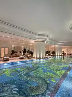 Renowned for its lavish decor, the pool features intricate designs on its floor that resemble a vibrant piece of artwork. The interplay of light and water creates mesmerizing reflections, blending the patterns with rippling waves in a breathtaking display. Surrounded by elegant columns and illuminated by exquisite lighting, the ambiance evokes the grandeur of an ancient Roman noble courtyard.