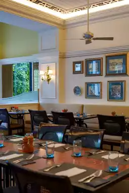 The hotel's English name "Grand Lapa" draws inspiration from Lisbon's famous upscale neighborhood, Lapa. In the center of the lobby, a replica of the renowned artwork "Window of Tomar" is displayed above the staircase. On the second floor, the bar serves delicious tom yum-flavored nuts that are a must-try, and next door is the highly acclaimed Chinese restaurant Kam Lai Heen. By the hotel pool, there's also an excellent Thai restaurant, Tamarind Thai Restaurant.