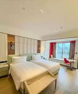The hotel I stayed at this time was YOHO Treasure Island Resort World Hotel, and the environment was really great, with stunning night views!