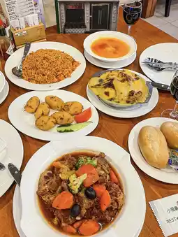 We ordered a set meal for two, and the portions were very generous. It even came with red wine, adding a touch of ceremony.