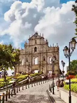 🕍 Ruins of St. Paul's in Macau. This used to be the largest church in Asia. It is another popular check-in spot for tourists when they come. 🌼 Its architecture is a mix of Eastern and Western cultures. It is beautiful. The last time we went, it was closed for renovation. There was a canvas covering the front, so we couldn't go up close. What a shame. Has anyone been there? What's inside? Come talk to us or recommend places to visit.