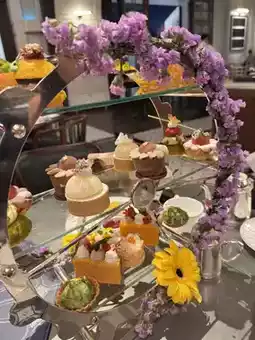 ᪥Desserts in the shape of flowers, such as spring butterflies, black cocoa peony, or fresh fruit. The Ferris wheel is exquisite and suitable for taking pictures. There are also two cups of classic British black tea or special drinks.
