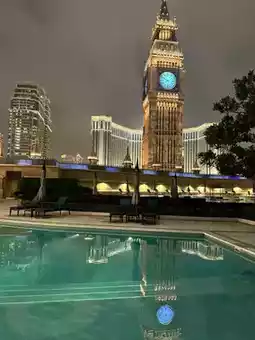 Conrad Macao Cotai Strip is a Macau hotel with breathtaking views and a luxurious pool. The hotel shares its pool with The Londoner Hotel, and room views include either the Big Ben view or the Eiffel Tower view. It's the perfect place to enjoy a relaxing staycation in Macau, soaking in the beautiful Big Ben view and indulging in the upscale pool facilities.
