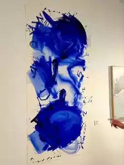 His paintings, often composed of abstract lines and soft colors, appear casual yet full of rhythm.
