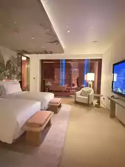 Although the villa is not located on a high floor, its panoramic floor-to-ceiling windows offer stunning views of Macau's glittering nightscape. However, those who prioritize privacy might find the open layout slightly lacking.