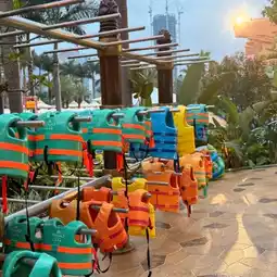 🌊 Featured experience: The world's longest 575 meters aerial rapids, white sand beach and sky waterfalls, children can rent colorful swimming circle rafting, parents lie on the artificial beach to drink iced coconut. Free unlimited admission for hotel guests!