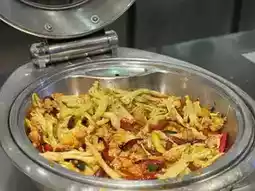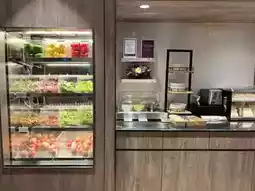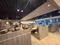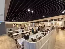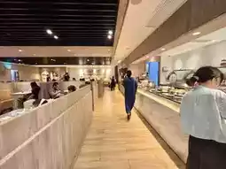 🔻 The lounge is spacious, clean, and divided into several zones. You can have a meal here, with a variety of food options available, including Hong Kong fishball noodles, roasted pork, stir-fried cauliflower (this one is super delicious!), as well as salads and bread, which are also great.