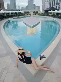 ▫️ The Londoner Macao Bond Building 8th Floor Junyi Pool - newly opened in mid-April! You can capture pool photos with the Paris Eiffel Tower in the frame, and I even found a hidden heart-shaped pool🩵 with a 100% chance of great shots.