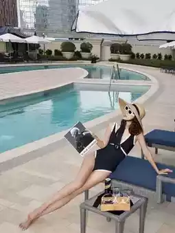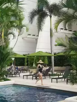 ▫️ The Londoner Macao Beckett Building 4th Floor Junhuang Pool - a tropical rainforest hidden in the city🌴 Lounge chairs + palm trees + blue sky, perfect for creating Instagram-worthy vacation photos in no time!