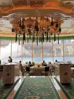 A constantly changing fountain show unfolds beyond the large floor-to-ceiling windows. The water streams dance to music and lights, adding a touch of emotion to your meal. The scenery outside and the food on your table combine to create a truly special Macau experience. 💦🎶✨