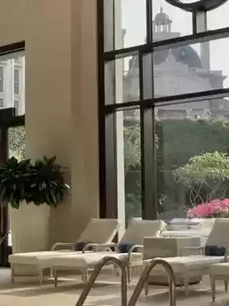 The indoor pool at the Grand Lisboa Palace Hotel is bathed in sunlight streaming through the floor-to-ceiling windows, creating a shimmering effect on the water. Swimming here feels like gliding through beams of sunlight, offering a truly enchanting experience. 🏊🌞✨