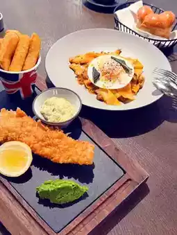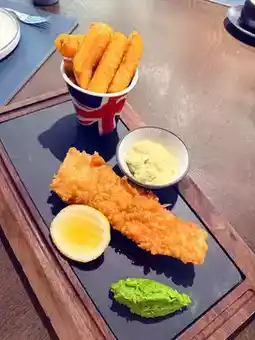 The beer-battered haddock is unforgettable, crispy on the outside and warm on the inside. The triple-fried fries are generously cut and spicy, making them incredibly filling. Paired with tartare sauce and mushy peas, they're a must-try.