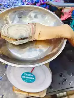 Today, we ordered live geoduck. The staff took us to the aquarium to pick our preferred geoduck, each one lively and energetic. After choosing, we decided on the cooking method. For live geoduck, sashimi is the way to go! The geoduck's innards are also edible, so we followed the restaurant's recommendation to cook them into congee. When the sashimi arrived, it was presented beautifully, with two geoduck shells placed beside the dish for decoration. The sashimi itself was incredibly elastic and chewy, reminiscent of jellyfish skin and konjac. The meat was exceptionally sweet, even sweeter than scallops—truly impressive!