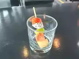 Cold Dishes: Fresh Fruit Skewer, Blueberry Soft Cheesecake, Prawn Toast with Wasabi Mayonnaise, Japanese Marinated Beef Sesame Rice Sushi, Cucumber Roll with Cream Cheese and Smoked Salmon (Topping: Lime Salad Dressing)