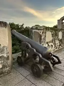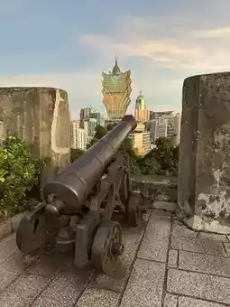 Open until 7 PM, its leafy ramparts guide you to broad viewpoints where old stone cannons frame two icons at once: the Ruins of St. Paul’s just below and the shimmering Grand Lisboa on the skyline.