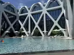 💫 Stepping into the hotel's high-speed elevator, I was greeted by the futuristic lobby. The rooftop sky-high pool offers endless views, and the state-of-the-art fitness center features high-tech amenities (available through the mywellness app). I was only there for photos. 😆