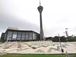 Macau's must-see attractions: the Macau Tower. Experience the unique high-altitude bungee jumping experience and stroll through the tower, enjoying stunning views of the old city and the casino district.