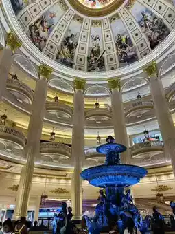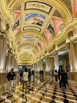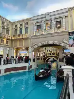 The hotel features canals where you can experience a gondola ride! There are also famous egg tart shops and a food court, making it a great spot for dining. 🍽️