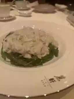 🌟 Braised Crab Meat with Seasonal Greens in Egg White Sauce: Generous portions of crab meat paired with crisp greens, layered over a base of egg white, create a rich and textured taste.