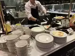 The attentive service staff will immediately ask if you would like premium coffee or English tea upon seating. The clean dining environment adds to the comfort.