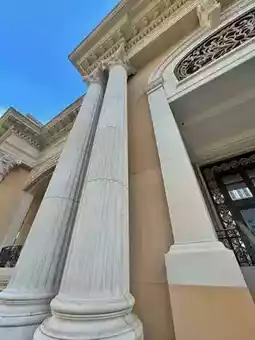An Instagram-worthy trendy staircase with fantastic geometric lines. Wearing light-colored clothes is recommended for better photo effects.