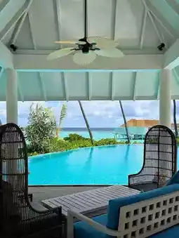 Depart from Centara Ras Fushi Island in North Male Atoll to Central Grande Island in South Male Atoll. Both hotels belong to Thailand's Centara Group, but each has its own characteristics. Centara Grande Island is an adults-only resort that offers a romantic and tranquil atmosphere, making it an ideal choice for couples on their honeymoon, while Centara Grande Island is more suitable for family trips, offering a wealth of family activities and children's facilities. The two hotels allow guests to experience different vacation styles through the group's internal island hopping program. In Central Grand Island, we stayed in the C position in the water house area! Sunset Ocean Pool Villa. This villa has the best viewing point on the island, and the 180-degree unparalleled sea view is breathtaking. The villa's private swimming pool seems to be integrated with the sea level in the distance. At sunset, the sky is dyed golden red and reflected in the swimming pool and the ocean, forming a beautiful picture. The most surprising thing is that there is a coral reef just down the stairs from the villa. This experience of close contact with marine life is really rare.