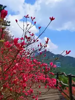 ☘️ In the vibrant spring months of March and April, as the first gentle breeze sweeps across Guifeng Mountain, the azaleas begin to quietly bloom all over the mountain. They blossom in the ⛰️ mountains, among the 🌳 trees, and in every corner, competing for attention with nature's most dazzling colors. These 🌼 flowers, some in bud, some half-open, each seem to tell a story of spring.