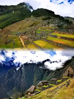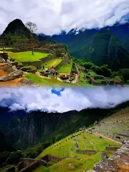 Located in the Cusco region of Peru, Machu Picchu is a pre-Columbian Inca Empire city ruin and one of the Seven Wonders of the World. Perched at an altitude of 2,430 meters on a mountain ridge, it overlooks the Urubamba River Valley, earning its nickname as the 'Sky City' and is also known as the 'Lost City of the Incas.'