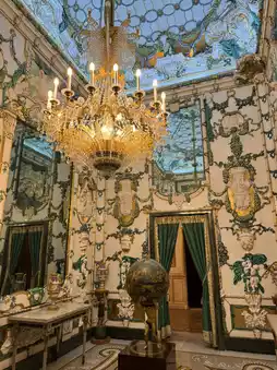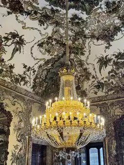 The Baroque style is characterized by gilded plaster, marble reliefs and complex murals, such as the ceiling painting of the Imperial Hall with Venetian crystal chandeliers, showing dynamic splendor; Neoclassicism is reflected in the symmetrical design and simple lines of the Hall of Mirrors. Italian art dominates the decorative details, with extensive use of Carrara marble and mythological theme murals🖼️