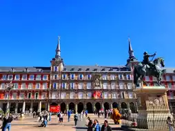 Plaza Mayor, the main square of Madrid, is an iconic symbol of the city and a must-visit destination. Located in the city center, this grand square was first constructed in the 17th century under the reign of King Philip III, whose bronze equestrian statue stands proudly in the square. Officially opened in 1620, the rectangular plaza is flanked by columns and arches on both sides.