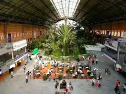 The Atocha Tropical Botanical Garden features an impressive 4,000 square meter greenhouse housing 260 species of tropical and subtropical plants. This large green space was created to celebrate the arrival of the high-speed train (AVE) at Atocha station. The garden is located on the ground floor and is accessible from the Emperor Carlos V Plaza, Mendes Álvaro Street, and Princess Isabel Avenue.