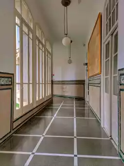 This unique site was commissioned by Mrs. Dolores Romero Arano, the widow and heir of one of the founders of the Bank of Spain. Completed in 1916, it showcases the distinctive features of Antonio Palacios' architecture, such as the use of limestone or ceramic coatings. The building has an octagonal cross-shaped layout, adhering to the typical circular prison model that allows the entire complex to be observed from a single vantage point.