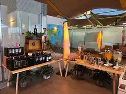 The food and drink options here are abundant, catering to all tastes. A standout feature is the clean dining area where you can sit down and enjoy a proper meal—something rarely found in most lounges.