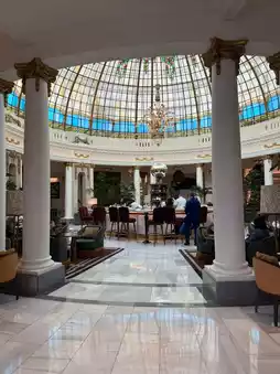 Nestled right in the heart of a bustling metropolis, this property exudes sheer elegance and sophistication once inside. This vintage old world hotel truly is a treasure. The grand lobby, adorned with prestigious steps and a magnificent staircase, lends a majestic feeling. The top-tier concierges are excellent and exceedingly helpful, offering comprehensive insight into the locale. A standout feature is the functional space, beautifully appointed, and the dining room with its exceptional stained glass cupola—a sight worth seeing to truly grasp its grandeur. The food is delightful. Perhaps the best aspect is the most comfortable bed, featuring luxurious linens and pillows filled with feathers, delivering a wonderfully soft, cozy sleep experience. Kudos to everyone involved!