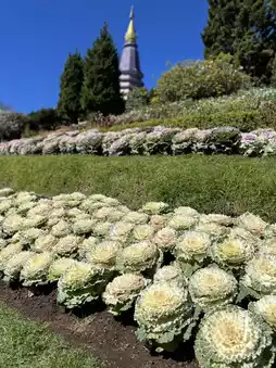 The two large commemorative pagodas are located on the summit of Doi Inthanon, surrounded by trees and mountain ranges that stretch as far as the eye can see. Inside, there are winter flower gardens, the Great Holy Relics, viewpoints, and souvenir shops. It is open for tourists to visit from the morning.