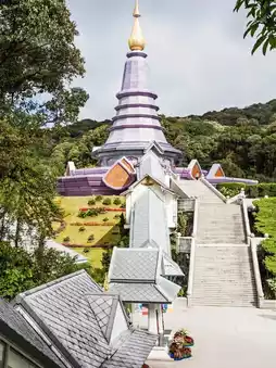Start your day by watching the sunrise over the sea of mist at the mountain's summit. Continue on the Kew Mae Pan Nature Trail, which takes you through rainforests, grasslands, and vibrant red azaleas blooming in winter.