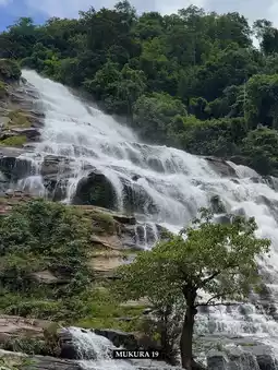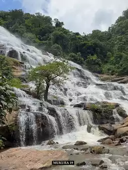Mae Ya Waterfall, located in Doi Inthanon National Park in Chiang Mai Province, is known as one of the most beautiful waterfalls in Thailand. Cascading down over 30 cliffs, it reaches a height of approximately 280 meters and a width of over 100 meters, creating a blanket of white water that fills the forest. The sound of water crashing against the rocks creates a refreshing and cool atmosphere. Visitors can stroll, take photos, and experience nature up close. The waterfall's shady surroundings are perfect for relaxing and immersing themselves in the beauty of Chiang Mai's forests. Visitors to Doi Inthanon should not miss Mae Ya Waterfall, a stunning Lanna gem that promises unforgettable memories. #GetDiscountsWithoutLuck